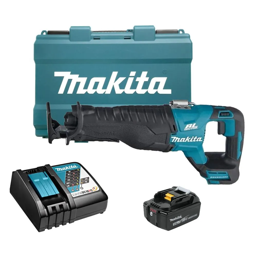 бесщеточный двигатель, 18 В, 1х5 Ач Li-ion, 0-2300/0-3000 об/мин, ход 32 мм, рез 255 мм, 3.4 кг, чемодан, подсветка, набор пилок, D-об