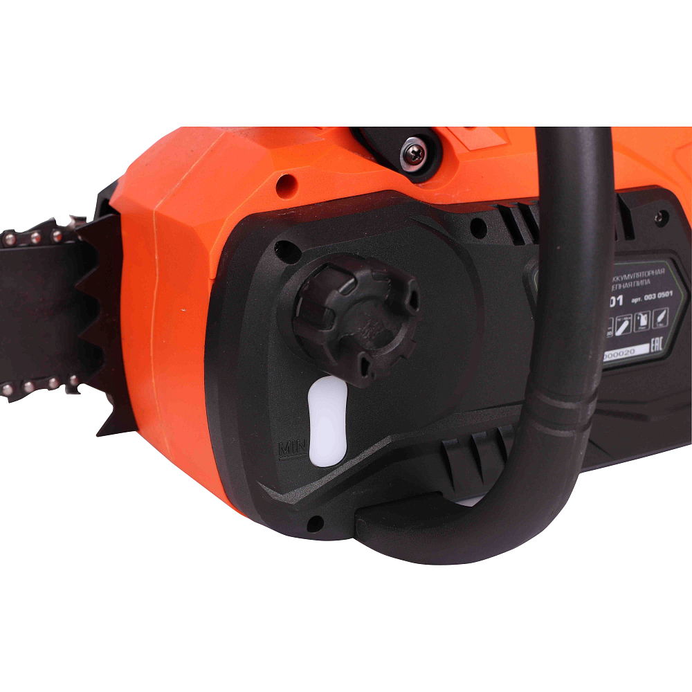 36 В, длина шины 16" / 40 см, шаг цепи 3/8", количеству зубьев цепи 57 шт., скорость цепи 21 м/с, Li-ion, 450х260х280 мм, 5,3 кг, без аккумулятора и зу