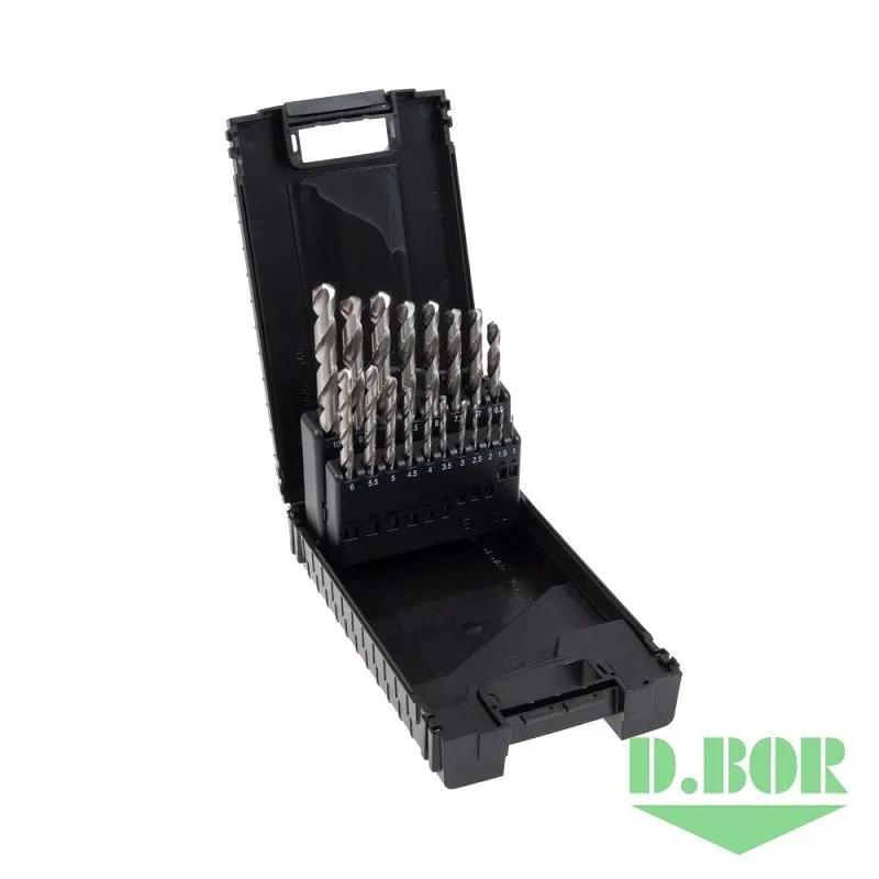 Набор сверл по металлу, шлифованные, HSS-G, 19 шт. (1-10 х 0,5 мм.) D.BOR W-011-141019108D-T