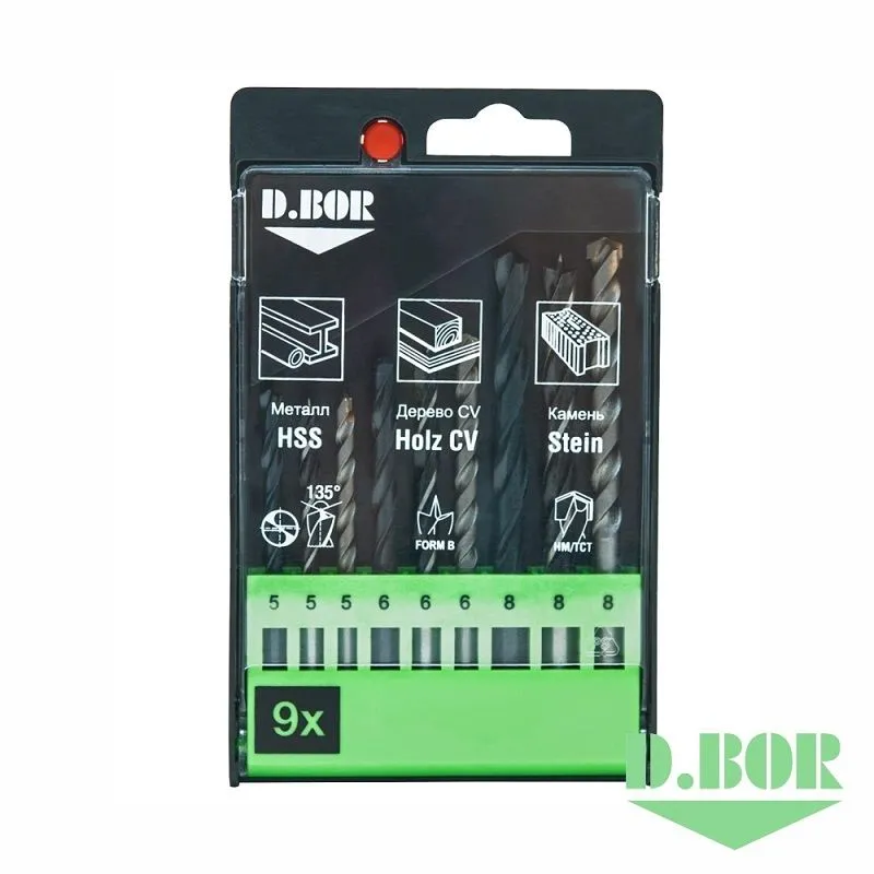 Набор сверл Хобби, металл, камень, дерево, 9 шт. (5-6-8 мм.) D.BOR W-011-175709304D