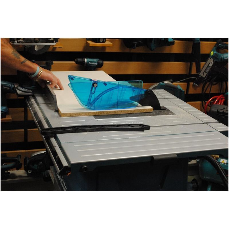 В MLT100N можно увеличить размер рабочего пространства, что будет удобным при работе с длинными и широкими заготовками. Для этого в конструкции пилы макита MLT100N предусмотрены два удлинителя стола – задний и правый. Задний удлинитель равен 15см, правый – 20см.