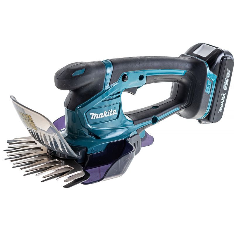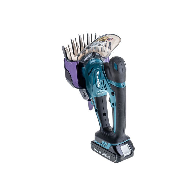 В ножницы Makita DUM604SYX можно установить блок напряжением 18 В и любой емкости – от 1,5 до 6 А-час. Это повлияет на время работы – так, заряда батареи 3 А-час хватит на два с лишним часа, при емкости 1,5 А-час – около часа. Полный вес инструмента тоже зависит от этого параметра и может составлять от 1,4 до 1,8 кг.