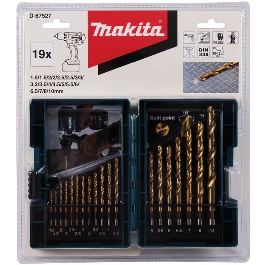 Набор сверл по металлу HSS-TiN, 1.5-10, 19 шт, Economy Makita D-67527