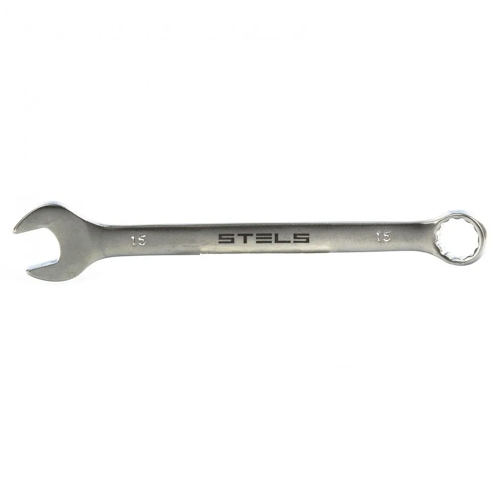 Ключ комбинированный, 15 мм, CrV, матовый хром STELS 15212