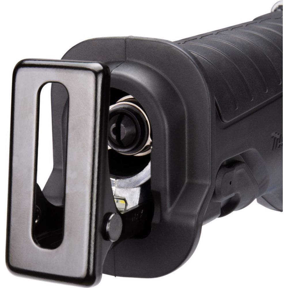 Литиевый блок в пиле Makita JR001GM201 оснащен собственной индикацией, которая активируется при нажатии на кнопку проверки. Загорается она на несколько секунд, показывая уровень оставшегося заряда (4 градации). Элемент управления самой пилой традиционный – курковый выключатель, при увеличении давления на который увеличивается скорость хода пилки.