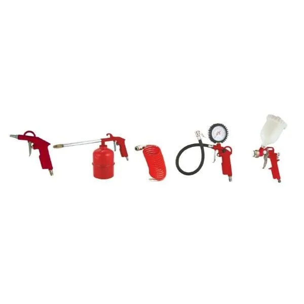 Набор пневмоинструмента ELITECH 0704.012000 включает в себя 5 предметов.