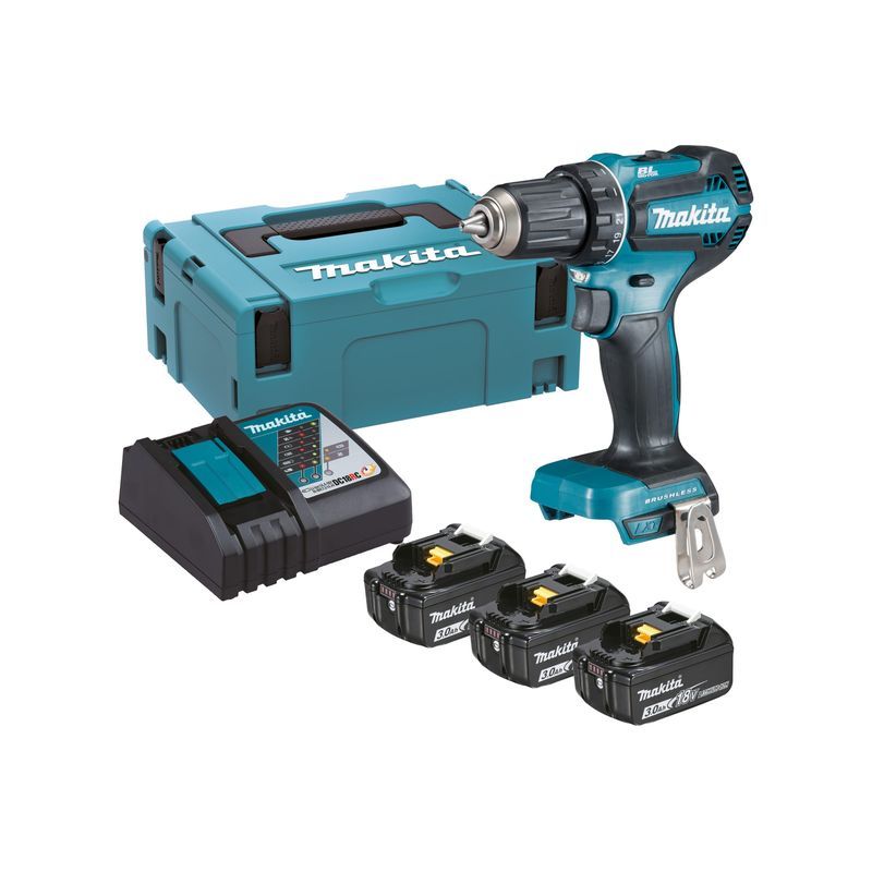 бесщеточный, 18В, 3х3 Ач Li-ion, быстрозажимной патрон 13мм, 0-500/ 0-1900об/мин, 50/25 Нм, 1.7кг, систейнер