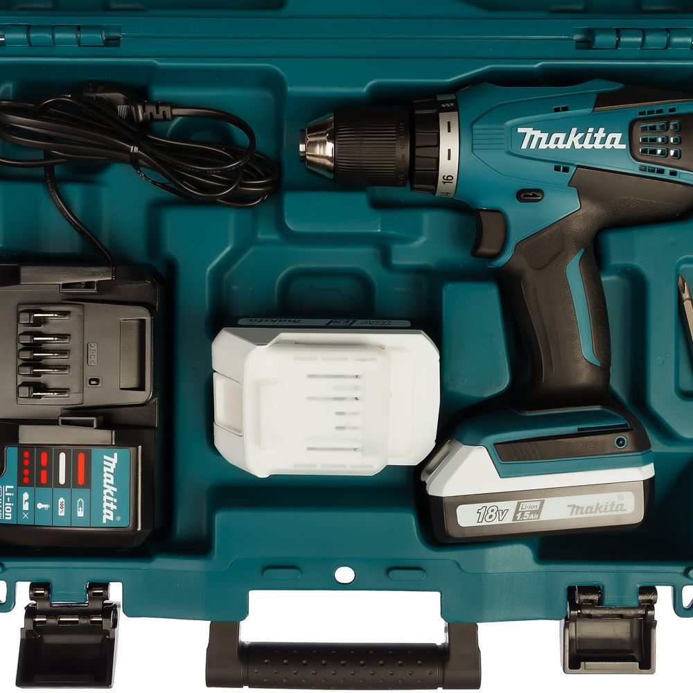 Электропитание инструмента Makita DF457DWEX9 производится от литиево-ионного аккумулятора на 18 В. Следует помнить, что в этой модели устанавливается аккумуляторы серии LXT. Аккумуляторного блока нет в комплекте поставки, но зарядное устройство в кейсе с инструментом имеется. Защита от перегрузки аккумулятора – трехступенчатая, от перегрузки по току, при перегреве и при снижении напряжения ниже допустимого уровня. При возникновении любой из этих ситуаций привод автоматически отключается.