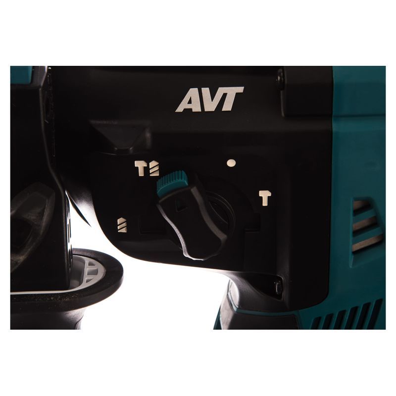 Светодиодная подсветка в перфораторе Makita HR001GM201 включается автоматически при нажатии на курок, послесвечение после отпускания – примерно 10 сек. Есть у неё и ещё одна функция. При неправильном срабатывании активной обратной связи (отключение привода при увеличении колебаний выше допустимого уровня) подсветка начинает мигать.