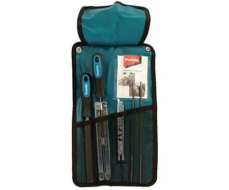Набор для заточки цепи: напильник круглый 4 мм х 2шт., плоский, шаблон, рукоятки, сумка Makita D-72154