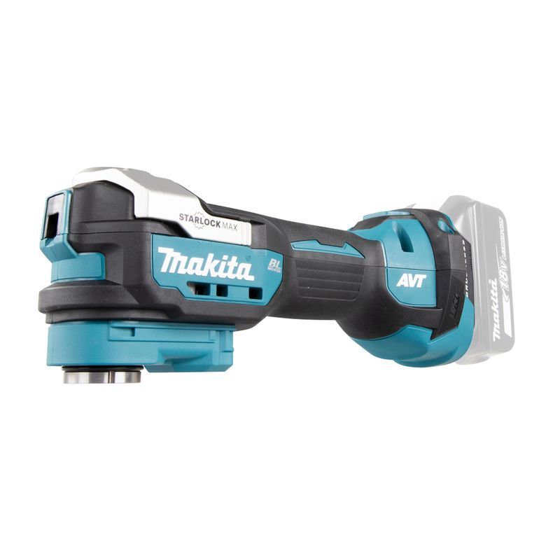 Мультитул Makita DTM52Z снабжен и функцией плавного запуска, нейтрализующей рывок в начале работы. Из других удобств для пользователя можно отметить применение в описываемом агрегате фирменной технологии AVT, снижающей до минимума вибрацию. Защита от случайного пуска не позволяет приводу включиться при присоединении аккумулятора в положении выключателя в положении «ВКЛ».