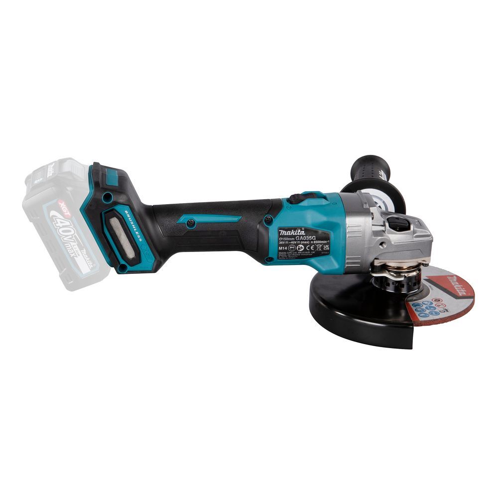 «Болгарки» с аккумуляторным питанием раньше имели ограничение по применению из-за ограниченной мощности. Ситуация изменилась с выводом на рынок инструмента с высоковольтным напряжением батареи. Агрегат Makita GA035GZ под диск 150 мм, предложенный компанией Макита потребителям в 2022 году – из серии XGT. Напряжение литиевого слайдера на его борту – 40 Вольт.