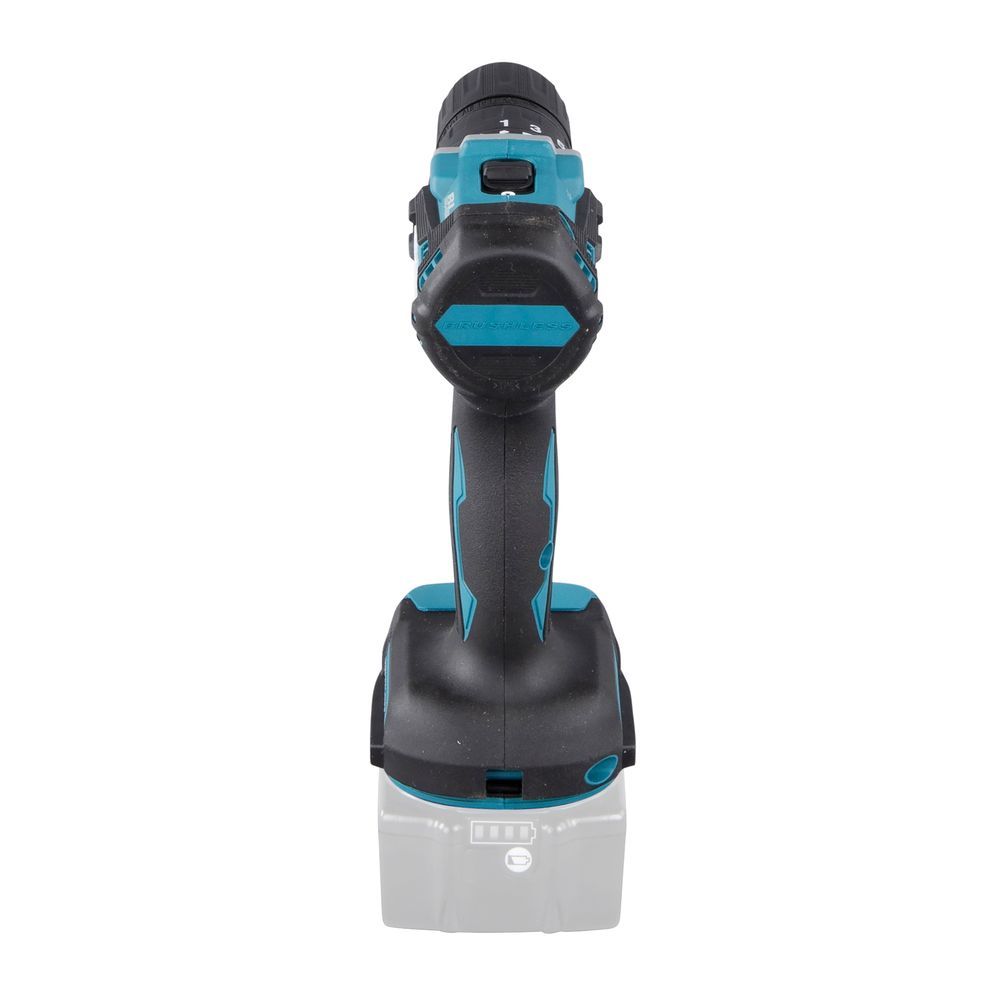 Инструмент Makita DHP487Z можно использовать для сверления в материале любой твердости – от пластика до бетона. В последнем случае используется ударный режим и сверло с головкой из карбида вольфрама. Привод при этом работает с частотой от нуля до 7500 о 25500 ударов в минуту в зависимости от давления на курок и положения переключателя скорости. Выбор режима (сверление, сверление с ударом или шуруповерт) традиционное – с помощью кольца в передней части инструмента.