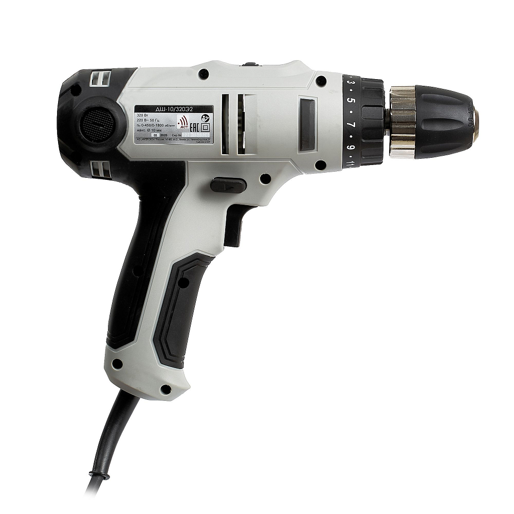 Дрель, 320Вт, быстрозажимной патрон 10мм, 0-450/0-1800 об/мин, 1.4кг, коробка