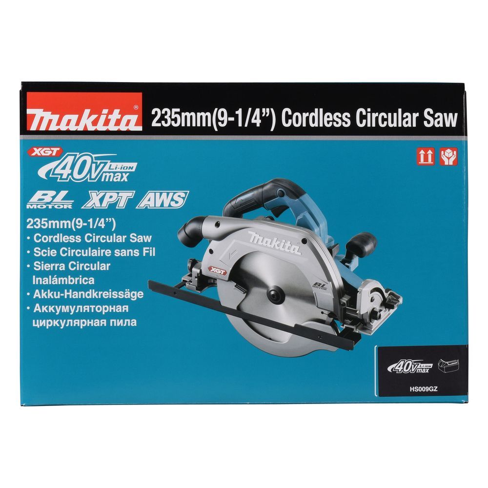 Система питания Макита XGT с напряжением аккумулятора 40 Вольт позволило создать инструмент, сопоставимый по эффективности с аналогами, питающимися от сети. К этой категории относится и циркулярная пила Makita HS009GZ, выведенная на российский рынок в 2023 году. Диаметр диска у неё – 235 мм, что позволяет резать заготовки на глубину 8,5 см.