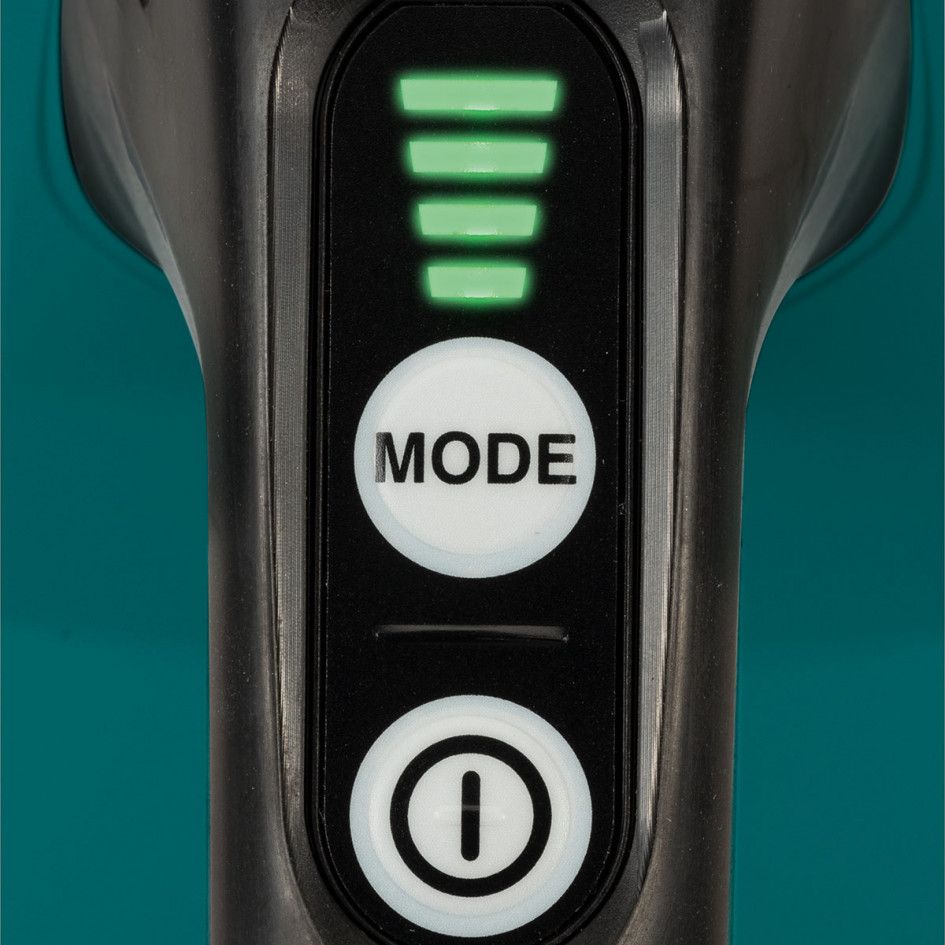 Включается пылесос Makita CL002GZ01 нажатием на кнопку питания и ей же выключается. Управление силой всасывания – с помощью другой кнопки. Мощность изменяется при каждом нажатии на неё, а её уровень выводится на сегментный индикатор. Подсветка включается автоматически при нажатии на кнопку изменения мощности и светится 10 секунд после отключения. Есть у неё и другая функция – светодиод начинает мигать при снижении напряжения на клеммах аккумулятора ниже допустимого уровня.