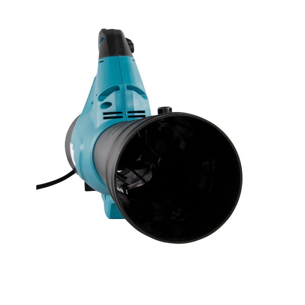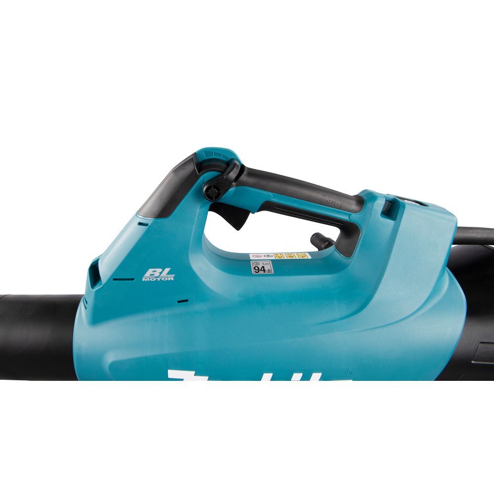Привод воздуходувки Makita UB001CZ раскручивается от нуля до максимальной скорости при увеличении давления на курок. Путем двойного нажатия на него агрегат можно перевести в режим повышенной мощности, но возможность его использования зависит от условий эксплуатации. За этим следит электроника и предупреждает о недоступности миганием индикатора питания. Ещё один элемент управления – рычаг увеличения частоты вращения. В агрегате реализована функция круиз-контроля, позволяющая поддерживать постоянство частоты вращения привода.