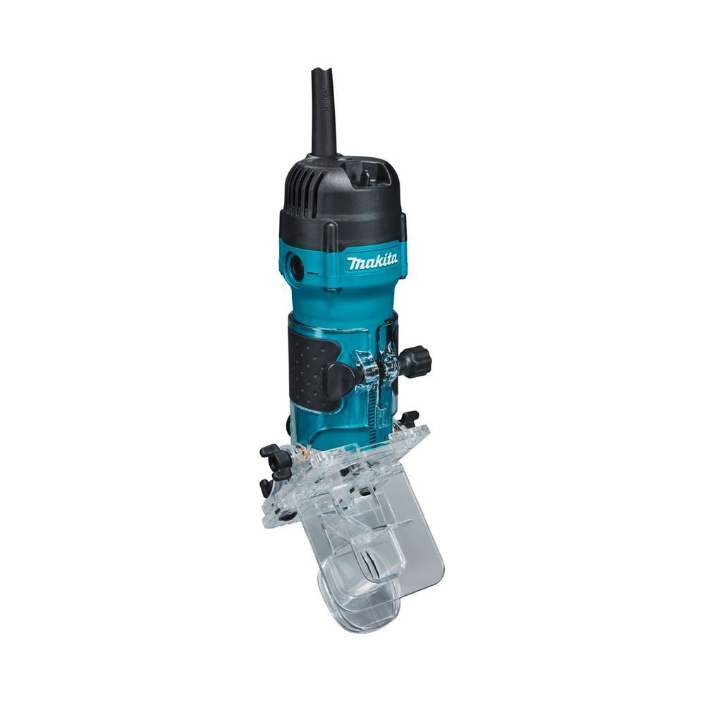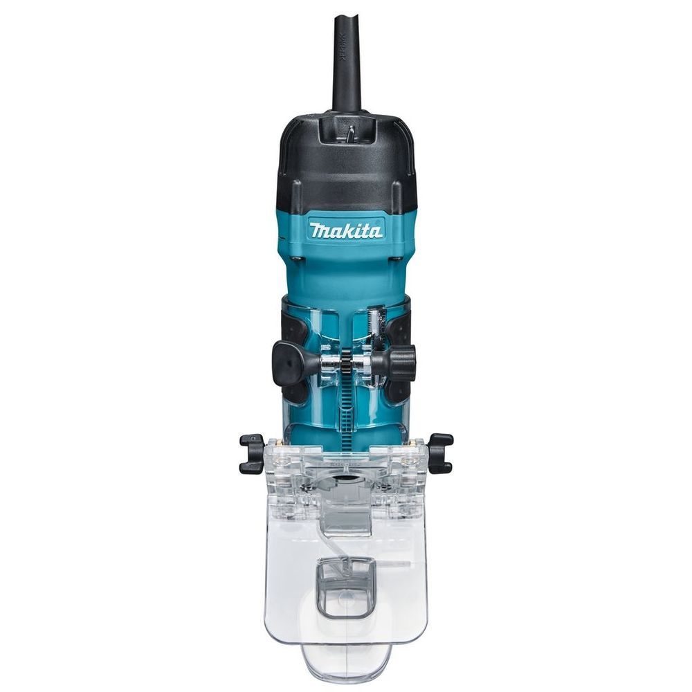 Электрика агрегата Makita 3712 имеет двойную изоляцию электрооборудования и материал шнура, стойкий к истиранию. Длина его – 2,5 метра. В инструменте используется надежный щеточный двигатель мощностью 530 Вт, который обеспечивает легкое погружение фрезы на глубину до 4,2 см.
