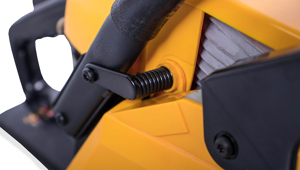 Бензопила оснащена двигателем мощностью 1,5  кВт, который обеспечивает высокую скорость пиления и позволяет быстро справляться с большими объемами работы. Длина шины составляет 16 дюймов (40 сантиметров), что делает ее идеальной для распиловки бревен и других материалов большого диаметра.