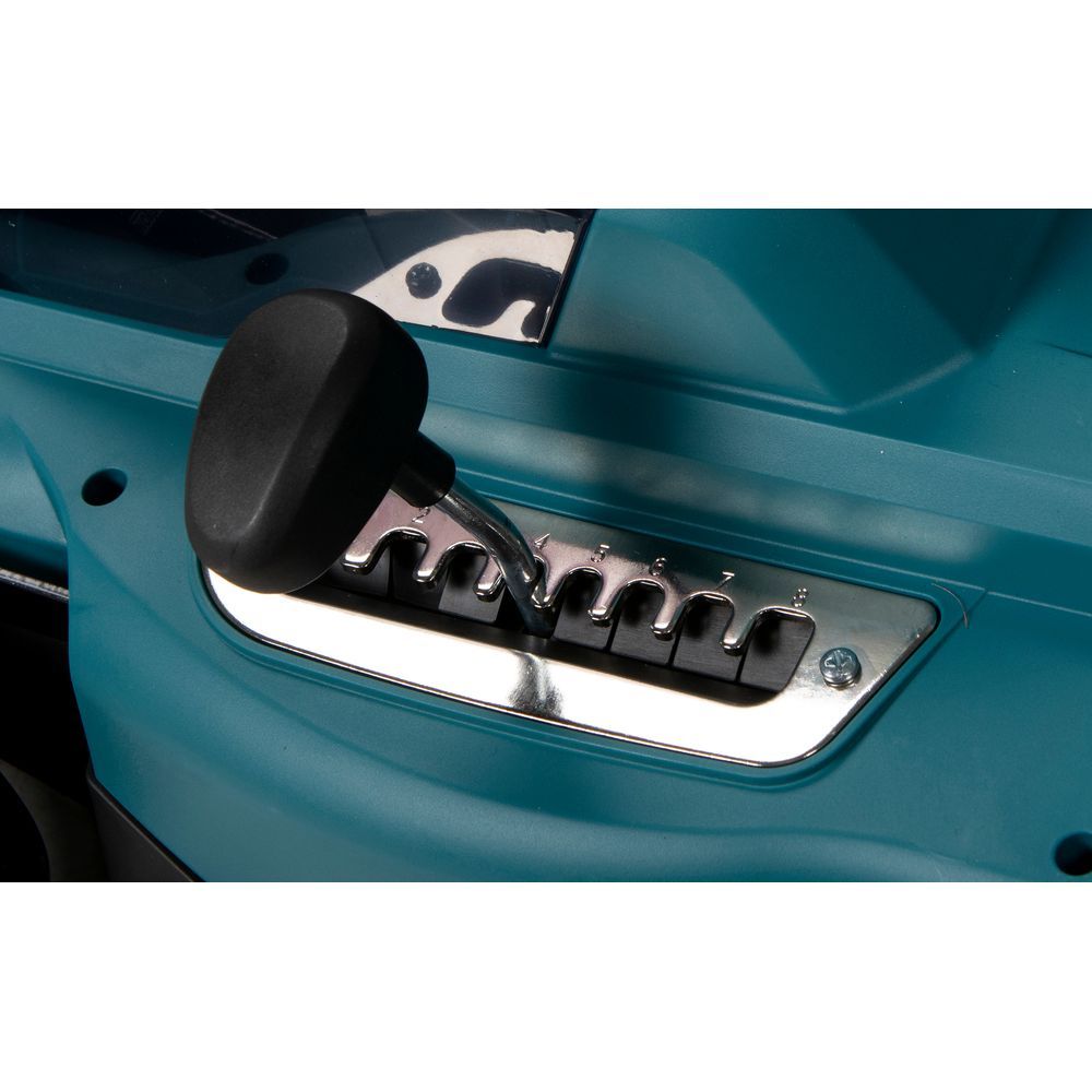 Управление агрегатом Makita DLM330Z традиционное, с помощью рычажного переключателя. Запуск двигателя производится отдельной кнопкой включения, имеется и клавиша блокировки. Высота скашивания регулируется рычагом в диапазоне от 2,5 до 7 см. Ещё одна настройка в агрегате позволяет изменить высоту рукоятки в трех ступенях. Специальный инструмент для этого не требуется – гайки и болты крепления  в этой модели накатные.