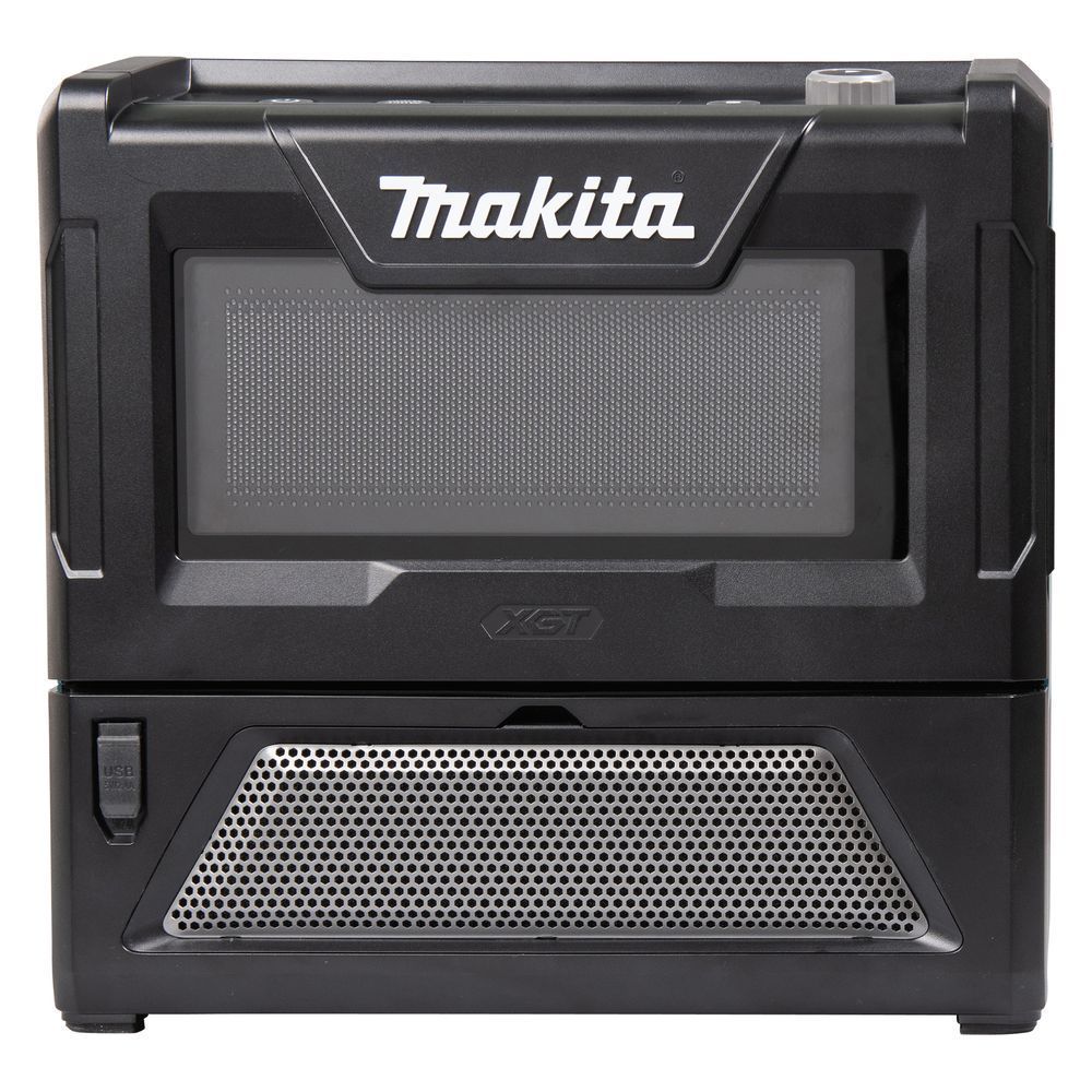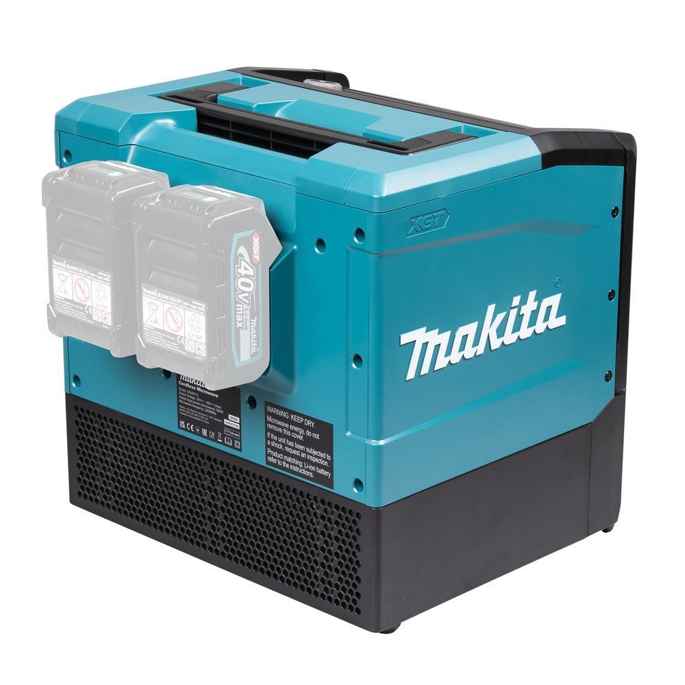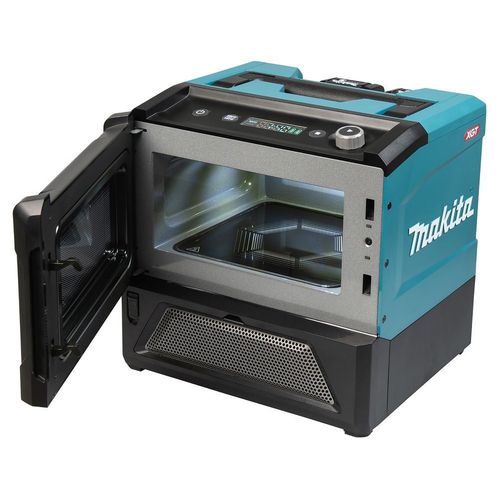 Этот уникальный продукт в ряду бытовых приборов компании Макита был предложен потребителям в 2023 году благодаря системе аккумуляторного питания электроинструмента XGT. Микроволновая печь Makita MW001GZ оснащена парой аккумуляторов серии BL40 напряжением 40 Вольт, что позволяет разогревать продукты на мощности 500 Вт. Время работы микроволновки на одной зарядке от батарей емкостью 8 А-час составляет почти 50 минут.