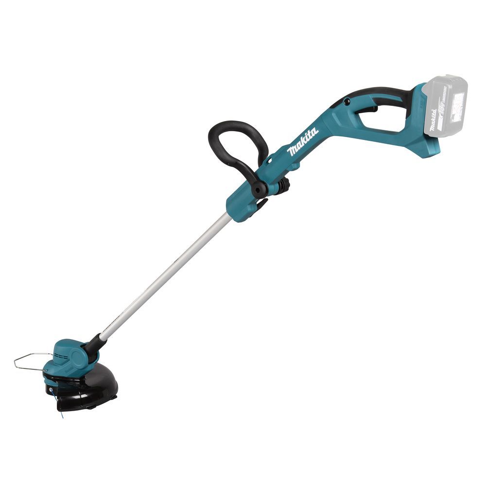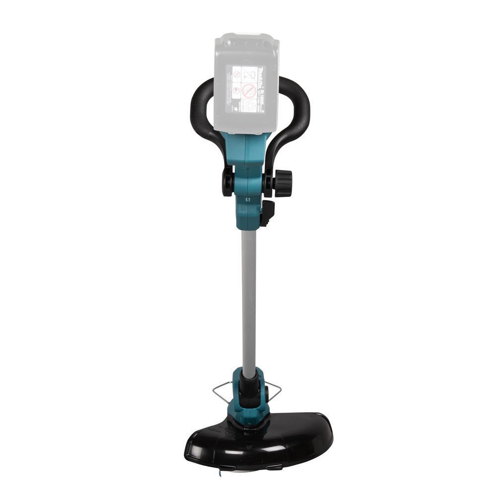 Безопасность пользователя триммера Makita DUR193Z обеспечивается кнопкой разблокировки выключателя, которая не позволяет случайно включить привод. Нажимать на неё можно с любой стороны. Однако, все регулировки инструмента производитель рекомендует производить при снятой батарее. Пользователь должен настроить длину вала и угол резания таким образом, чтобы режущая головка была выровнена по отношению к поверхности. Все регулировки не требуют дополнительного инструмента. Например, угол срезания выставляется путем нажатия на кнопку, а фиксация положения рукоятки производится с помощью накатной гайки.