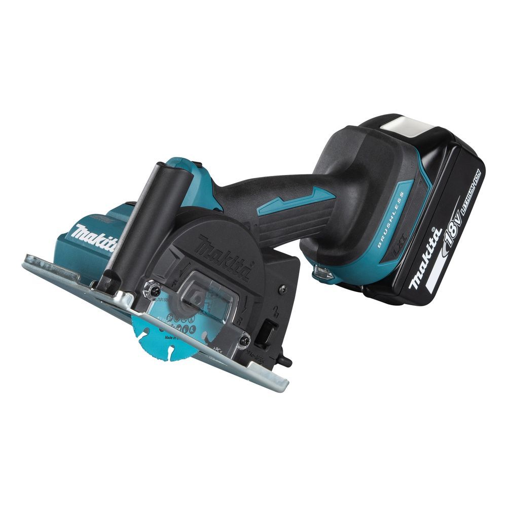 Весит инструмент не более 1700 г, питание – от аккумулятора серии BL18 любой емкости. В комплект поставки этой модели батарея не входит, а пользователь УШМ  Makita DMC300Z получает – помимо автономности и компактности (длина не более 28 см) – целый набор других преимуществ: