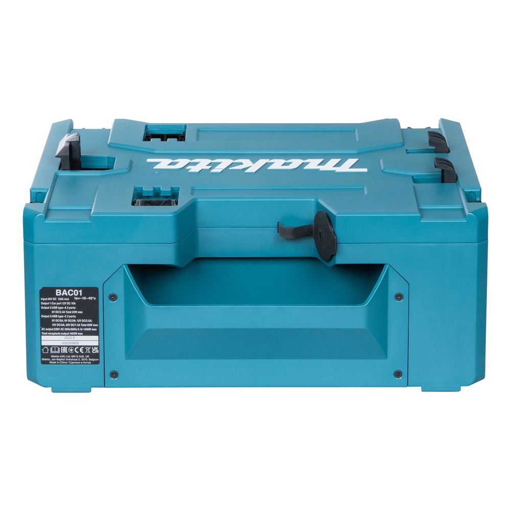 В качестве источника питания для этого изделия используются ранцевые блоки питания Макита PDC01 или PDC1200, обычно используемые для увеличения времени работы аккумуляторного инструмента. Обладатель инвертора Makita RUABAC01 получает, помимо сетевой розетки с приличной мощностью, и другие преимущества: