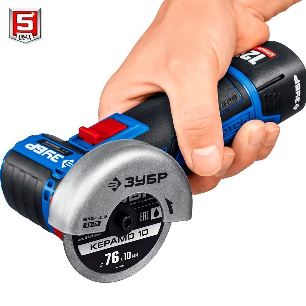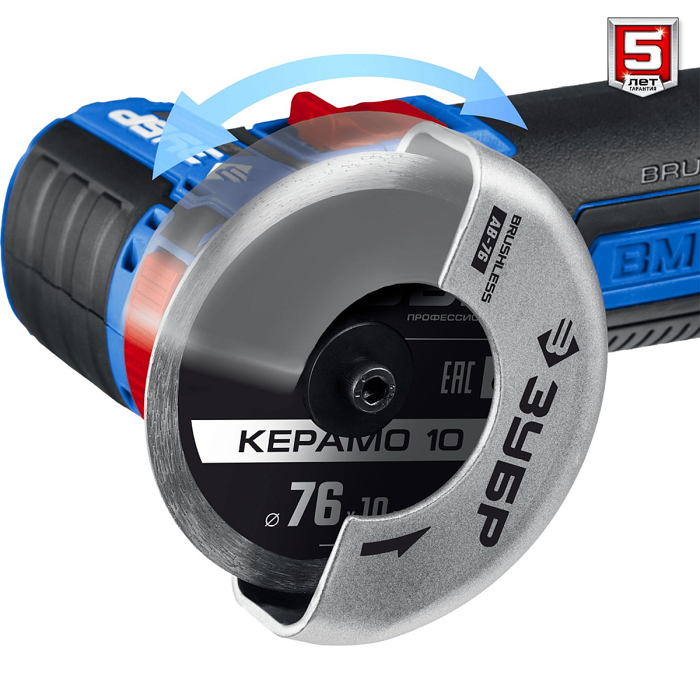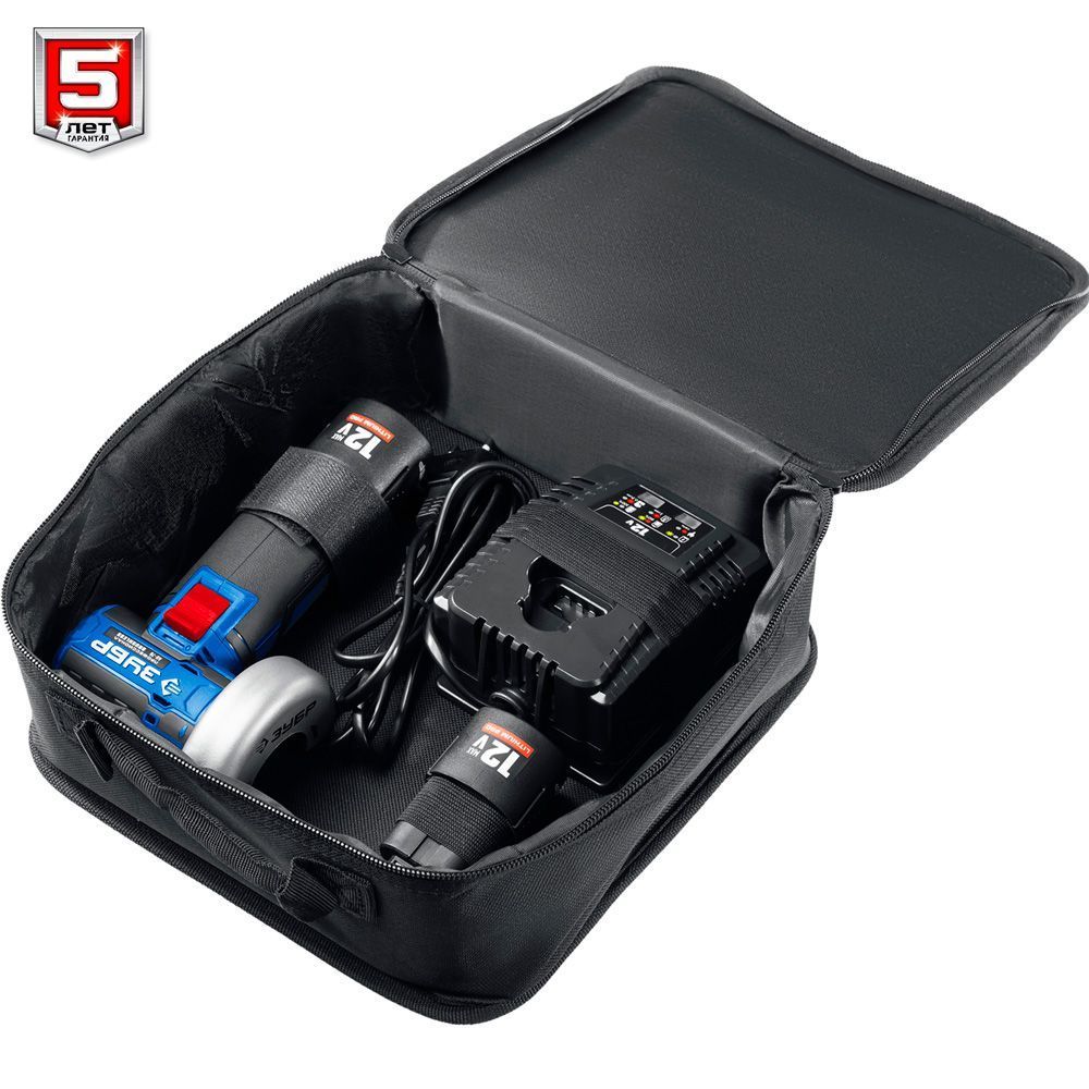 12В тип Т7, BM-Motor (бесщеточная), 2x2Ач, 76x10 мм, 20000 об/мин, плавный пуск, защита от случайного запуска, бесключевой кожух, защита при заклинивании диска ,сумка