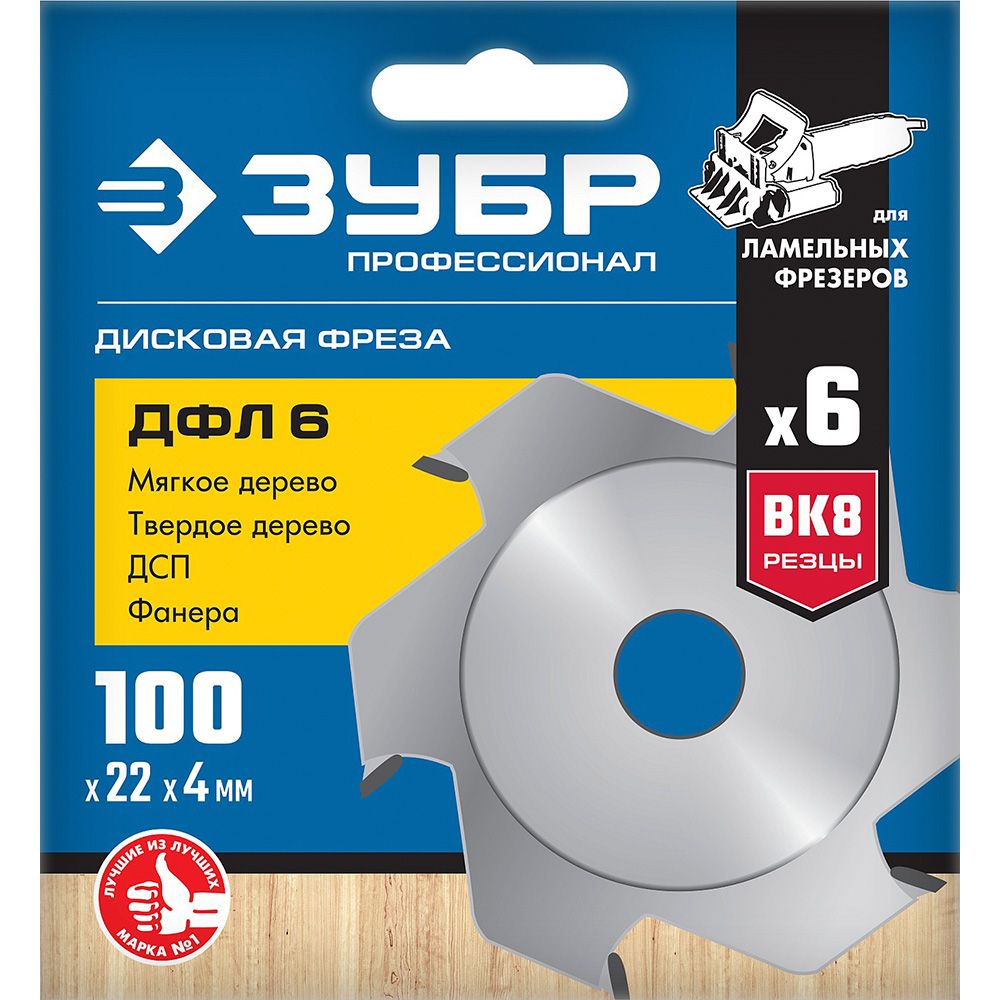 Дисковая фреза для ламельного фрезера ЗУБР ДФЛ6, 100 х 22,2 мм, 6 резцов