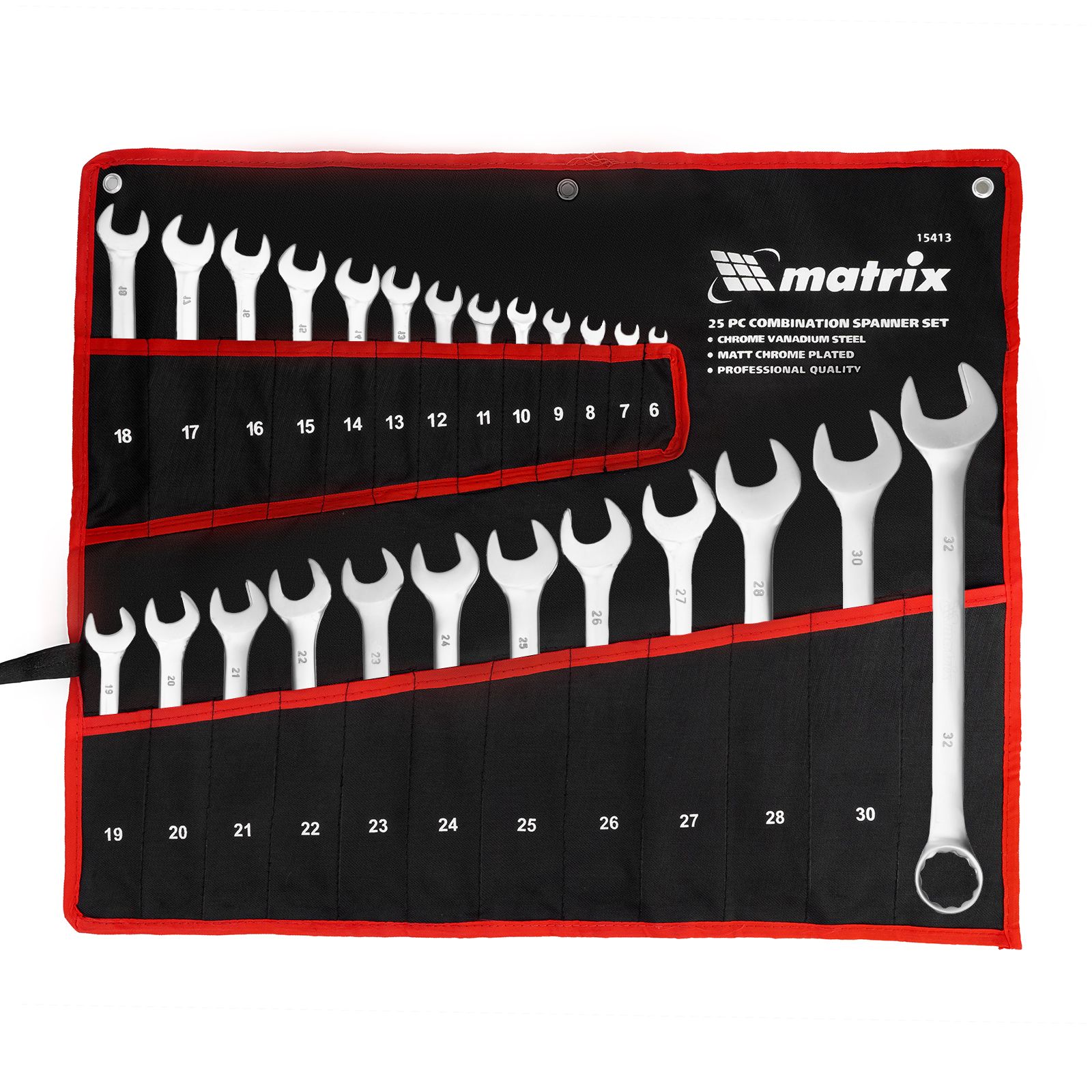 Набор ключей комбинированных, 6 - 32 мм, 25шт., CrV, матовый хром// Matrix