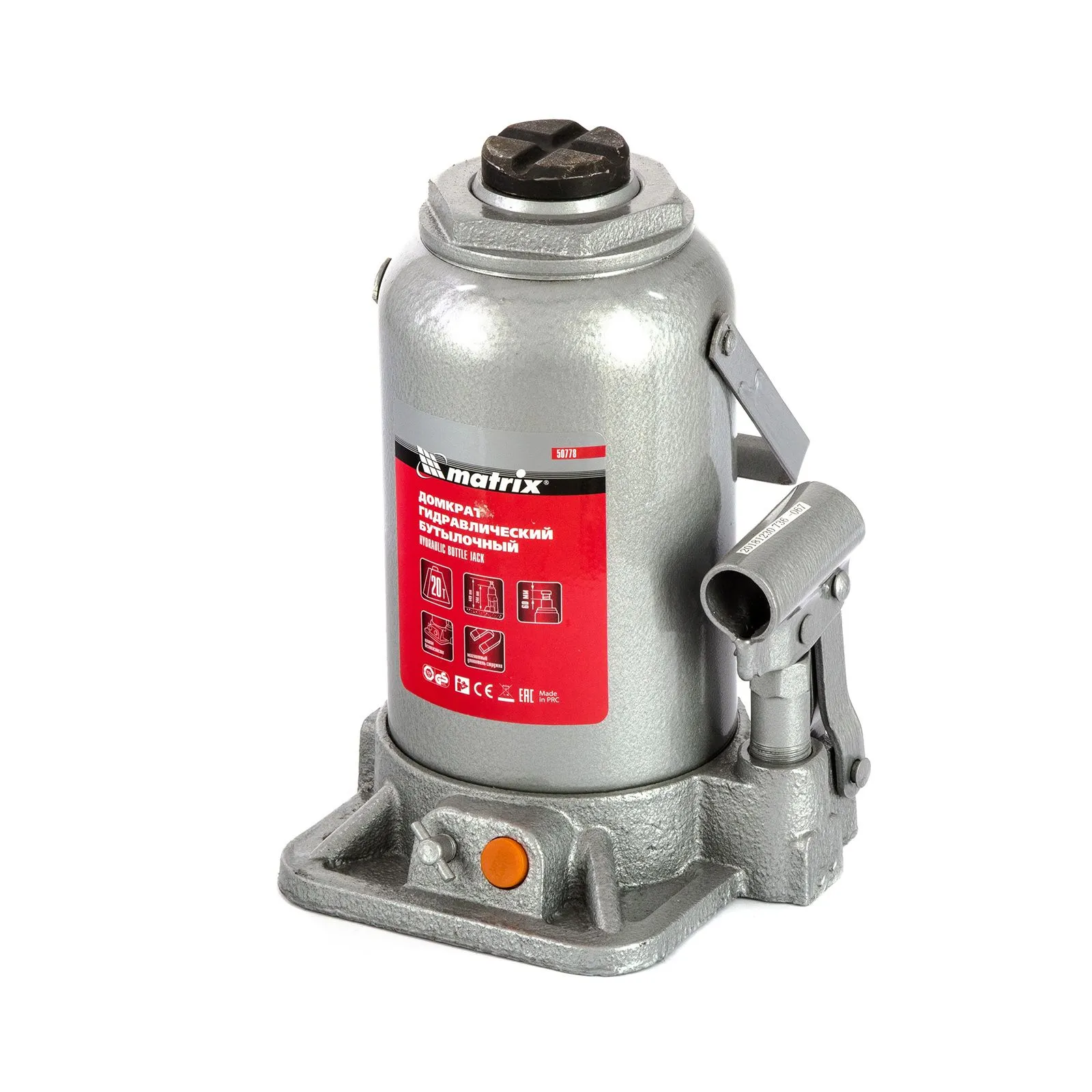 Гидравлический бутылочный домкрат Matrix 50778 поднимает грузы весом до 20 т на высоту 244-449 мм и может использоваться в гараже, на станции ТО или строительной площадке. Встроенный магнитный уловитель собирает металлическую стружку, образующуюся в процессе работы, что защищает домкрат от преждевременного износа.