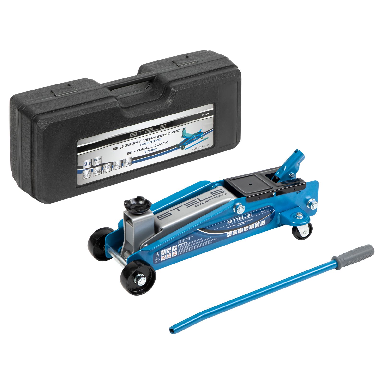 Домкрат гидравлический подкатной, высокий подъем, 3т SUV, 190-535 мм, в кейсе// Stels