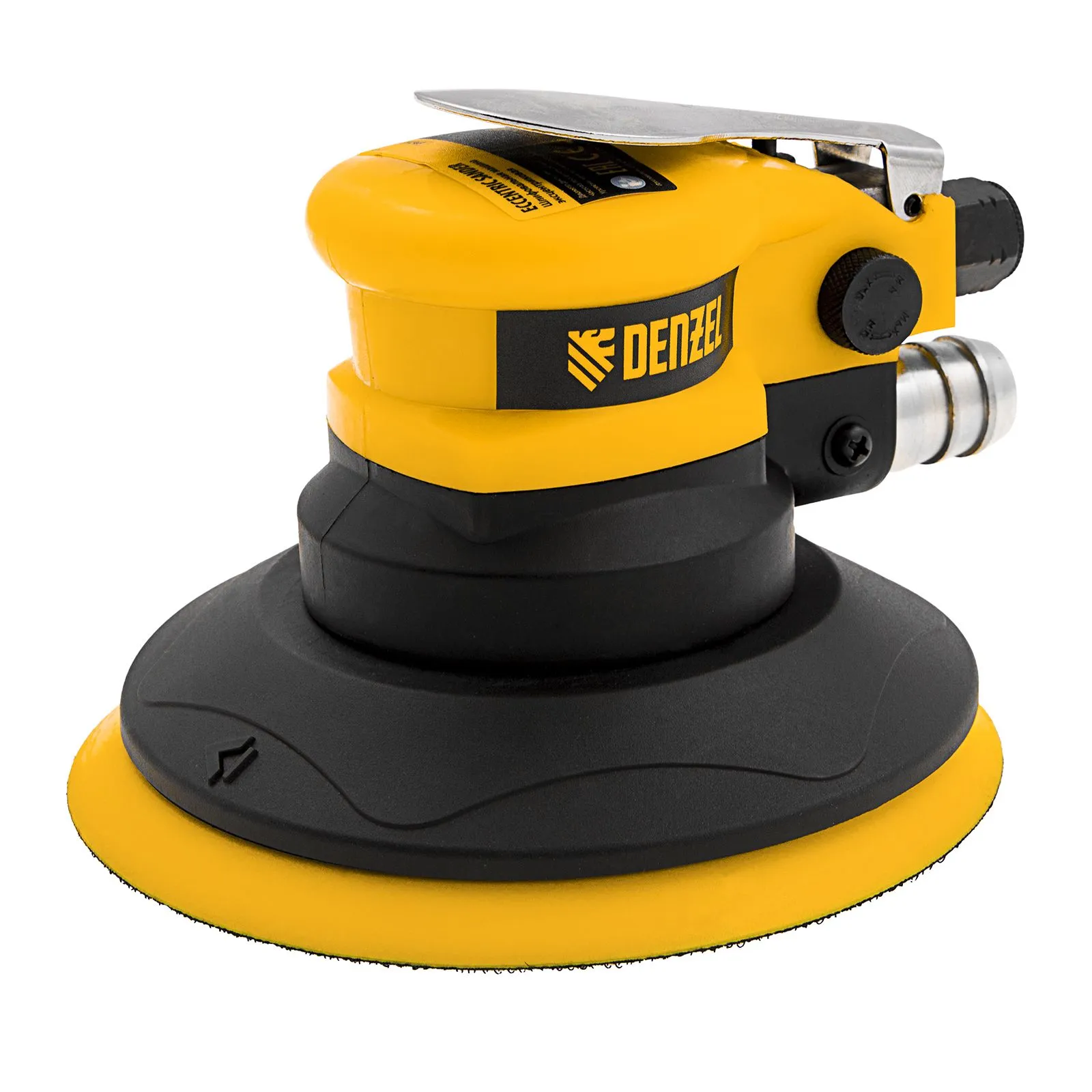 Пневматическая эксцентриковая шлифовальная машина Denzel EPG150 57476 с амплитудой 5 мм развивает скорость вращения 10000 об/мин при среднем расходе воздуха 160 л/мин. Этого достаточно для эффективного шлифования, зачистки и выравнивания любых поверхностей (древесины, металла, пластика и т.д.). С помощью машинки можно без усилий подготовить материал любой твердости к покраске или отделке, выровнять металл перед сваркой. А при использовании более мягкой насадки получится сделать любую поверхность абсолютно гладкой и придать ей дополнительный блеск.,Орбитальная шлифмашина предназначена для работы при давлении 6,3 бар, расход воздуха не превышает 200 л/мин. Во время работы не забывайте использовать специальное масло ISO 46, которое можно добавлять как напрямую в инструмент, так и с помощью блока подготовки воздуха Denzel 57469, включающего в себя лубрикатор для автоматической подачи масла.
