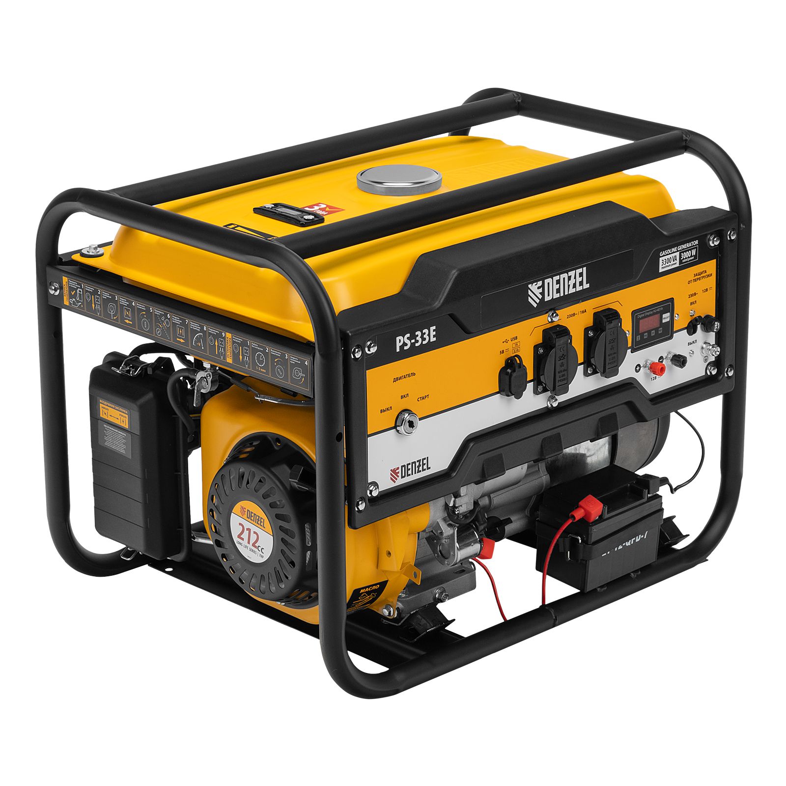 Генератор бензиновый PS-33E, 3,3 кВт, 230В, 15 л, электростартер// Denzel