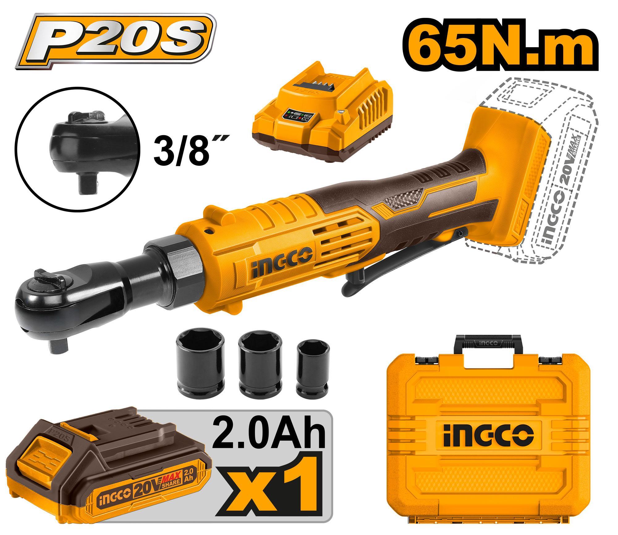 Трещотка аккумуляторная 65 Нм, 20В 3/8" INGCO CDRLI2060152