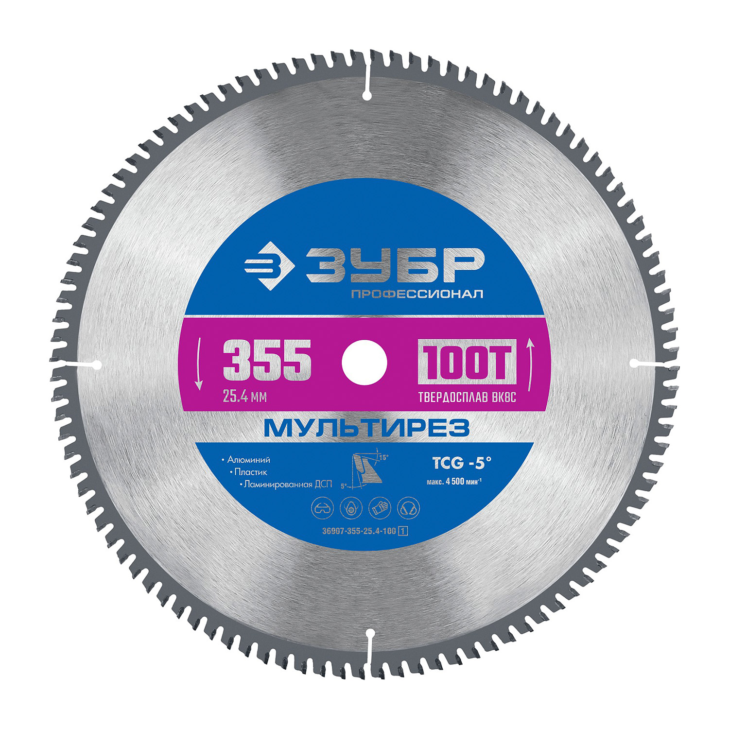 Пильный диск по алюминию Зубр Мультирез 355 х 25.4 мм 100Т (36907-355-25.4-100)