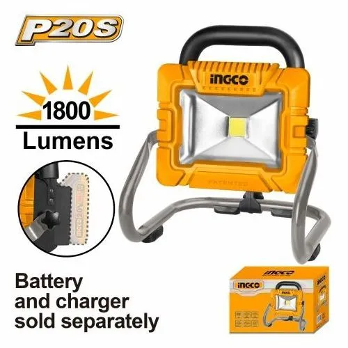 Аккумуляторный фонарь-прожектор 20В Li-Ion INGCO CWLI2025 серии P20S осветительный прибор прожекторного типа. Фонарь такого типа служит для равномерного освещения помещений большой площади.