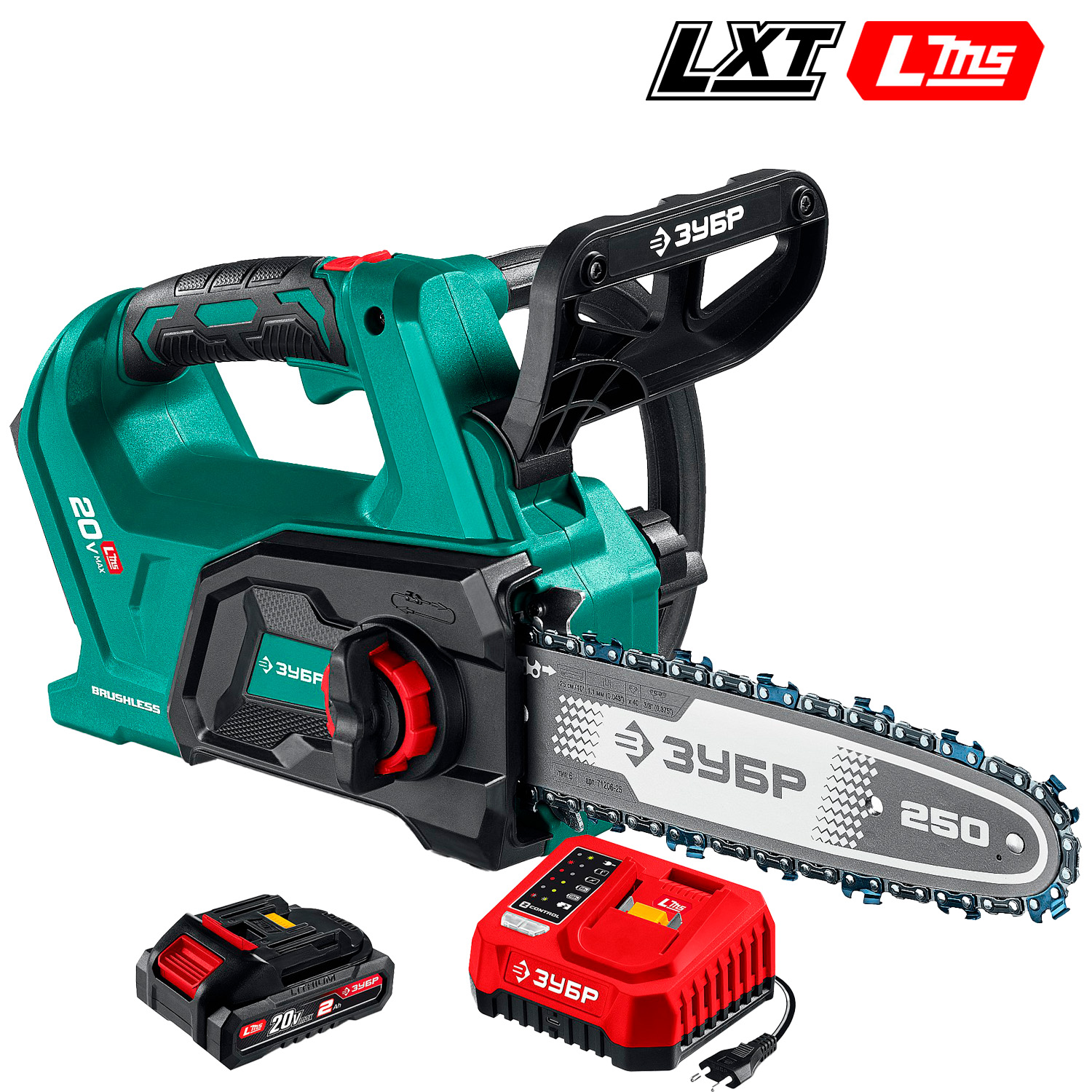 LMS/LXT 20В, 1x2Ач, Li-ion, шина 25см, шаг 3/8", паз 1.1 мм, 2.4 кг