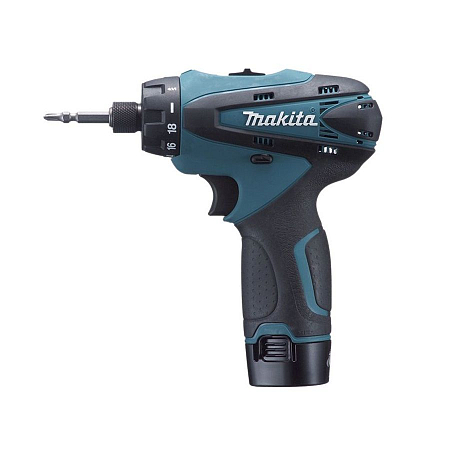 Малые габариты такого аккумулятора позволили японским инженерам обеспечить инструменту Makita DF030DWE вес всего 880 грамм и миниатюрные размеры. Длина агрегата не превышает 16 см. При этом основные характеристики его на вполне профессиональном уровне. Максимальный крутящий момент достигает 24 Нм и может изменяться в 18 положениях. Операция производится с помощью традиционного кольца в передней части.