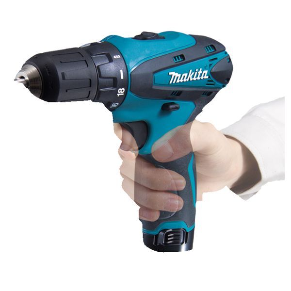 Makita DF330DWE – один из самых компактных двухрежимных шуруповертов. Современная модель с эргономичным корпусом и широкими эксплуатационными возможностями обеспечивает легкое и комфортное закручивание и сверление даже в малогабаритных и узких проемах.