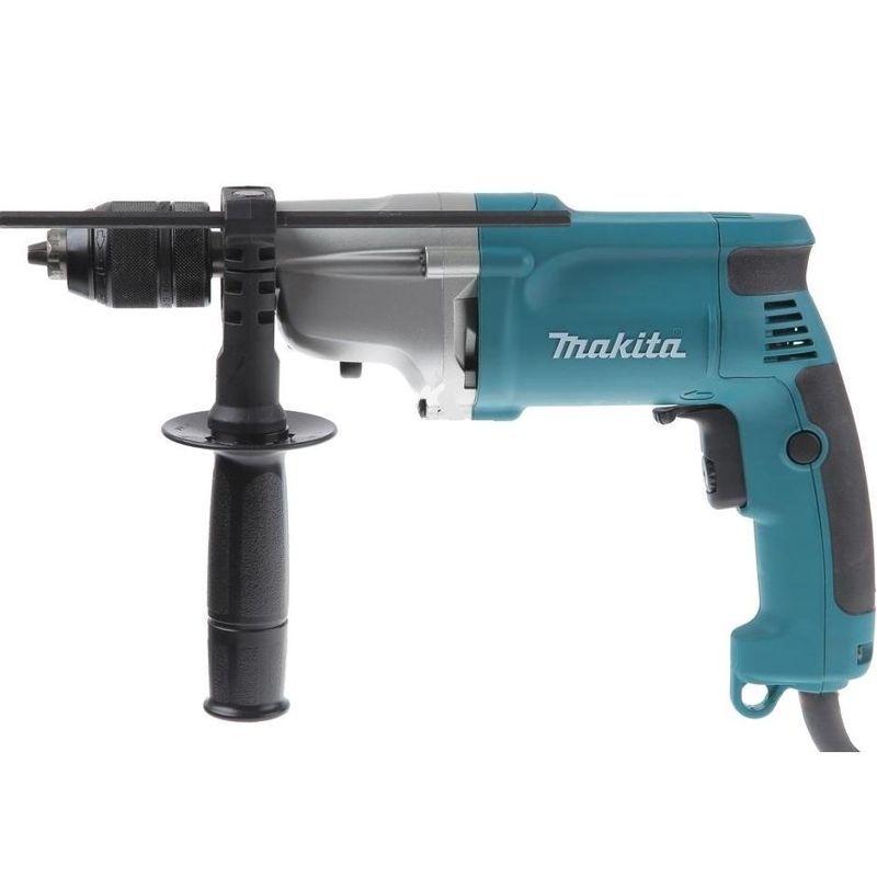 Мощности двигателя у инструмента Makita DP4011 вполне достаточно, её значение – 720 Вт. Поэтому с помощью этой дрели можно без напряжения сверлить отверстия диаметром до 40 мм в дереве или до 13 мм в металле. Последнее значение совпадает и с диаметром патрона этого агрегата. Патрон – быстрозажимной, что значительно упрощает установку в него сверла. Следует отметить, что 13 мм – это максимальный диаметр хвостовика сверла, которое можно в него установить. Минимальное значение – 1,5 мм.