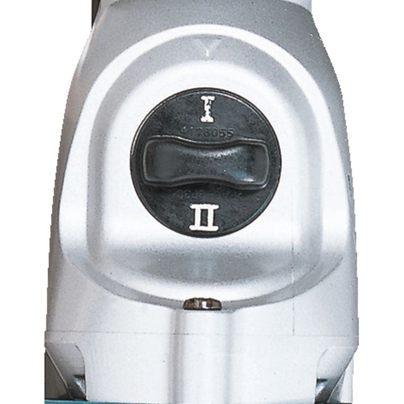 Этот элемент управления в дрели Makita DP4011 традиционный – курок, при нажатии на который скорость привода возрастает от нуля до максимального значения. Последнее в этой дрели имеет два значения – 1200 или 2900 об/мин. Изменяется оно уже без помощи электроники – настоящим «переключателем передач», расположенным на корпусе редуктора и изменяющим его передаточное число.