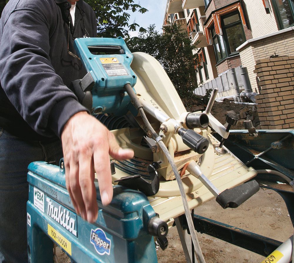 Этот инструмент точней было бы назвать универсальным станком, потому что комбинированная пила маятникового типа Makita LF1000 поставляется с рабочим столом, позволяющим использовать инструмент не только для обработки торцов. Именно этот своего рода «конструктор» позволяет превратить инструмент в настольный распиловочный станок. Обрабатывать им можно не только дерево, но детали из пластика и алюминиевые профили.