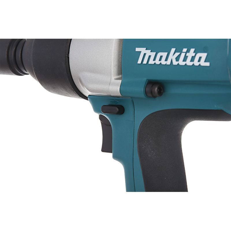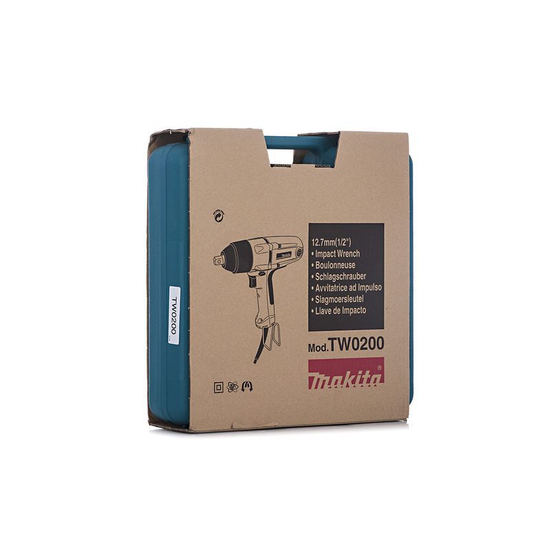 Корпус гайковерта Makita TW0200 выполнен из алюминиевого сплава, что одновременно обеспечивает его лёгкость и прекрасные теплоотводящие качества. Патрон у этого инструмента – специализированный, имеет квадратный хвостовик 12,7 мм. При работе необходимо учитывать материал крепежа (это отражено в вышеупомянутых графиках) и соблюдать соответствие его размера патрону. Присоединение к электросети следует производить, убедившись, что инструмент выключен.