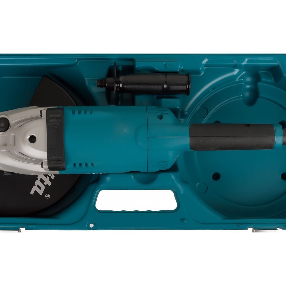 Особенностью этого электроинструмента является его повышенная мощность, поэтому угловая шлифмашина Makita GA9020SFK может использоваться не только по её основному назначению согласно названию. Этот агрегат мощностью в 2,2 кВт способен резать металл и бетон. Максимальный диаметр диска, который можно установить в шлифмашину, может достигать 23 см, а вращается он при работе на фиксированной скорости в 6600 об/мин.