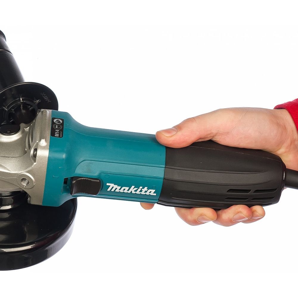 В УШМ Makita GA5030K, как и в любом изделии компании Макита, японские инженеры предусмотрели максимум удобства для пользователя. Так, включение агрегата в режим непрерывной работы не требует манипуляций с дополнительной кнопкой. Для этого используется основной выключатель - движок, который реагирует и на нажатие.