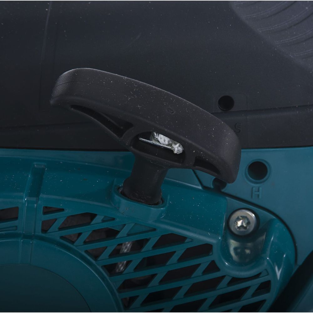 Бензопила Макита отличается простым включением, есть функция быстрого запуска оборудования. Стартер-тросик расположен на боковой части, как и в предыдущих моделях. Внутреннее наполнение тоже отличается качеством, что облегчает содержание и обслуживание инструмента. Топливный бак оснащен широкой трапециевидной крышкой, что исключает проливание бензина. Крышка оснащена S-образной вставкой, что упрощает пользование инструментом и обеспечивает быстрое открывание и закрывание бака. Модель оснащена праймером, который позволяет быстро запустить оборудование после долгого простоя.