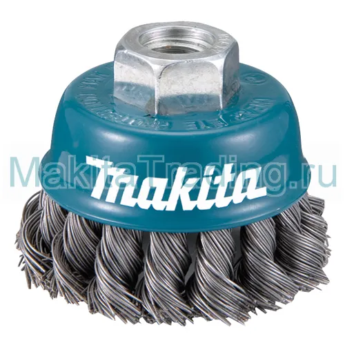 Чащечная щетка Makita из 16 пучков витой проволоки для работ с металлом. Подходит для моделей ушм (болгарок) Макита с креплением M14.