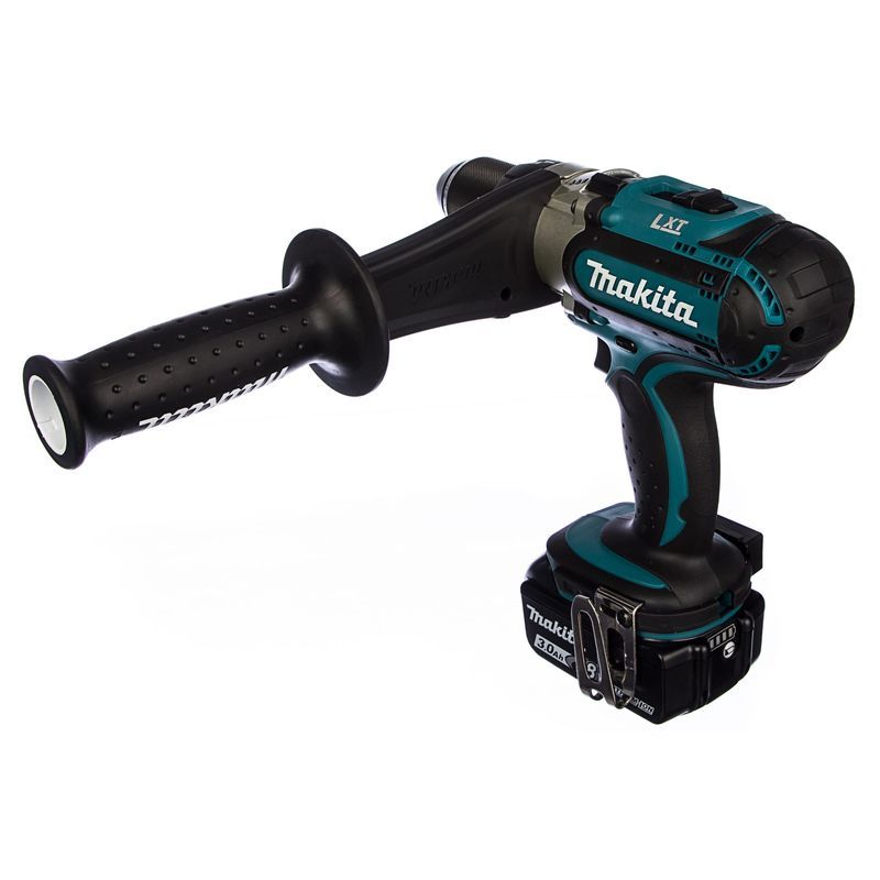 Длина у инструмента Makita DDF451RFE меньше 24 см, а вес составляет 2,1 кг. Ещё одно преимущество этой модели – возможность установки аккумулятора повышенной до 4 А-час ёмкости. Впрочем, штатный аккумуляторный блок на 3 А-час тоже не заставит часто прерывать работу. Во-первых, в комплекте поставки этих блоков два. Во-вторых, зарядное устройство работает по интеллектуальной технологии быстрой зарядки MAKSTAR. Это устройство вспомнит (без кавычек!) подключаемый аккумулятор и выполнит операцию с учётом его особенностей.